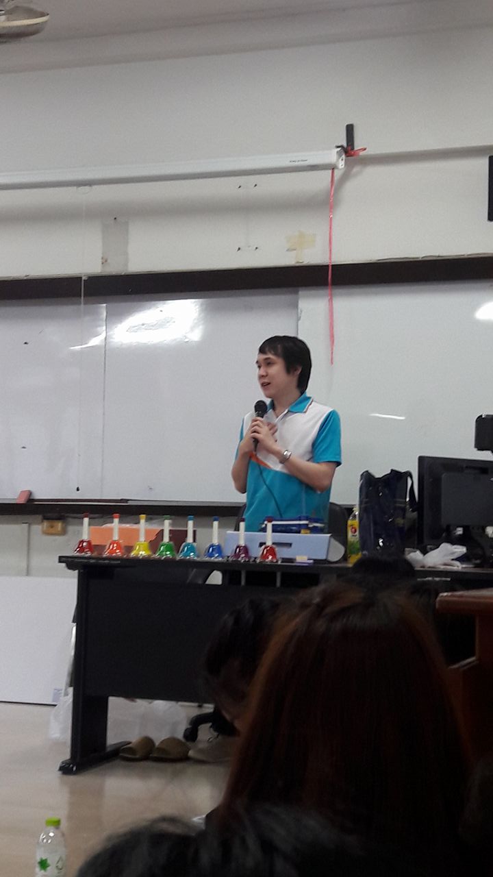 | หลังจากนั้นอาจารย์ให้เเต่ละคนออกมานำท่าเคลื่อนไหว โดยที่อธิบายท่าเคลื่อนไหวว่าเด็กควรทำอย่างไร |